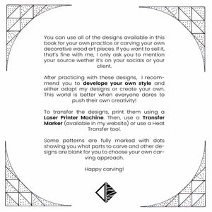 This Book of Patterns contains 31 patterns to be used for your Chip Carving practice (or coloring for yourself and/or kids).